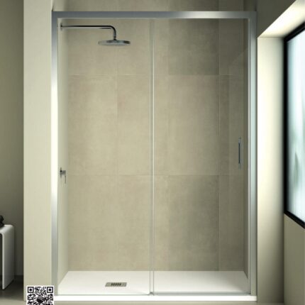 Mampara de ducha Corredera con Fijo de la colección Doccia ST. Vidrio templado 6 mm, perfil en Negro, Plata. Altura 1950 mm. Apertura frontal de 950 a 1800 mm. Instalación incluida.